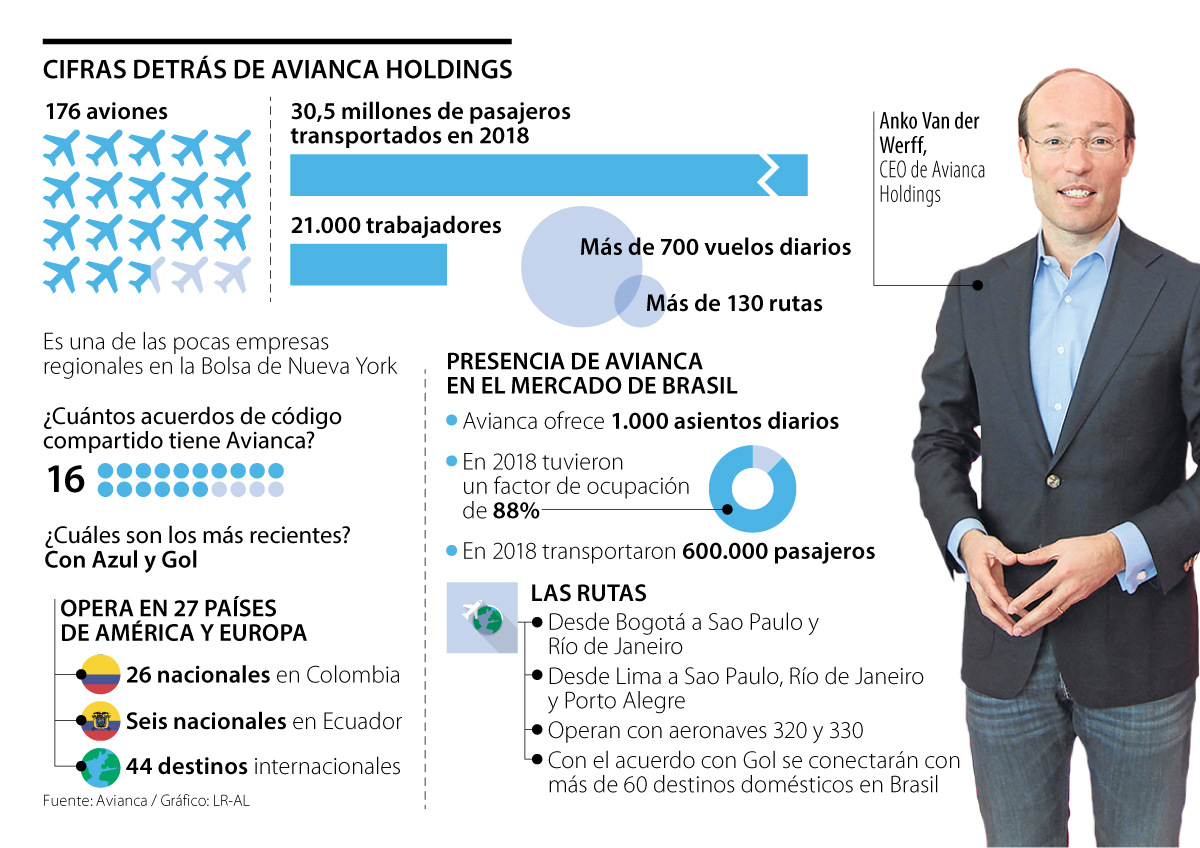 Además de hablar sobre esta nueva movida de Avianca en Brasil, Van der Werff le explicó a LR que en lo que están haciendo en términos de operaciones no ha influido United ni ninguna otra aerolínea. “Es algo que tenemos que hacer nosotros y por eso lo estamos manejando con el equipo interno”, dijo el CEO durante el ‘Alta Airline Leaders Forum 2019’, que se está llevando a cabo en la capital de Brasil.