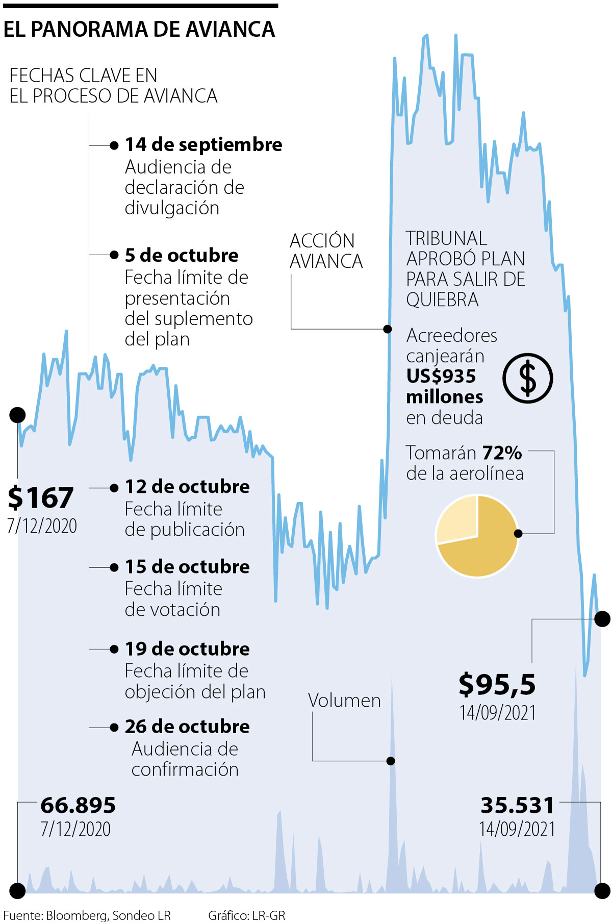 El Tribunal de Bancarrota de Nueva York le autorizó a Avianca solicitar los votos de ciertas clases de acreedores, con lo que el siguiente paso de la compañía será presentar dichos votos, a más tardar el 14 de octubre a las 4:00 p.m. Además, la fecha límite para objetar el plan será el 19 de octubre a la misma hora.