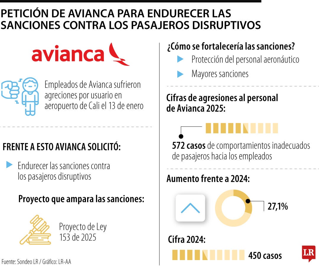 Avianca reiteró su llamado a las autoridades y al Congreso de la República para dar continuidad al trámite del Proyecto de Ley 153 de 2025, una iniciativa clave para endurecer las sanciones contra pasajeros disruptivos y fortalecer la protección del personal aeronáutico.