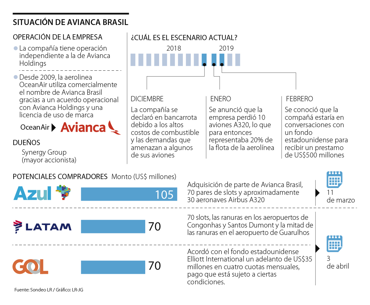 La puja por la aerolínea Avianca Brasil ya tiene tres contendientes. Se trata de Azul Linhas Aéreas, Latam Airlines Brasil y Gol Linhas Aéreas, que ayer dieron a conocer su oferta para adquirir ciertos activos de la empresa, que solicitó protección por quiebra en diciembre del año pasado. De momento, la oferta más alta viene de Azul, que anunció su propuesta el pasado 11 de marzo y que involucra un total de US$105 millones.