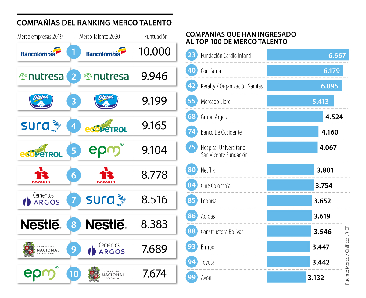 En los resultados de este año también se vio el ingreso, por primera vez, de la Fundación Cardio Infantil, Comfama, Keralty, Mercado Libre y Netflix al top 100