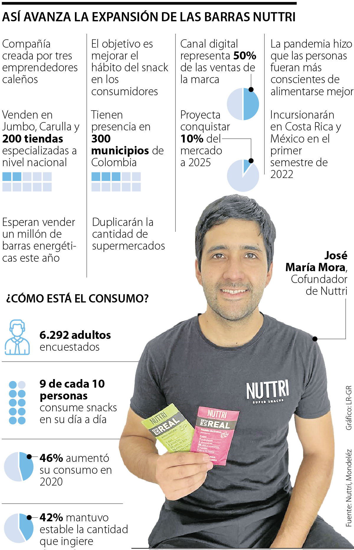 “Somos la marca número uno de barras en ventas online del país, y eso es lo que nos da la confianza para abrirnos a otros mercados con la fortalece en este canal. Tenemos un plan local para conquistar 10% del mercado a 2025 y vamos muy encaminados a lograrlo. En paralelo, nos hemos puesto a pensar en el negocio regional, por eso, en el primer semestre entraremos a Costa Rica, a través de un distribuidor, y en México, donde la categoría es 50 veces más grande que en Colombia”, señaló Mora.