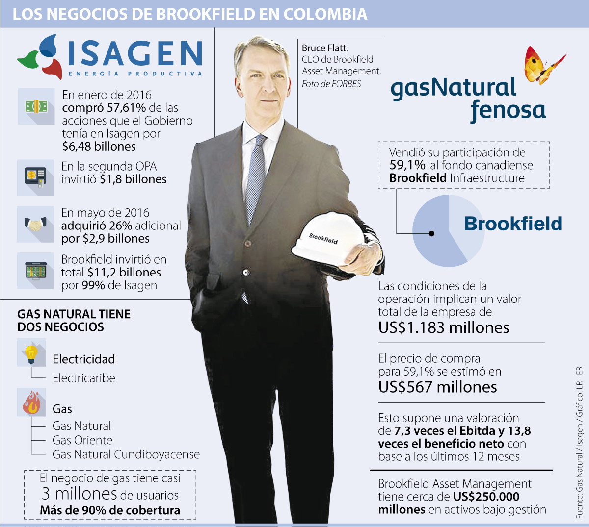 Desde ese día Brookfield, dirigida por Bruce Flatt, quien está nominado al Empresario del Año, ha protagonizado varias noticias del sector energético en LR, como cuando se hizo dueño de 99% de esa compañía, tras comprar un último lote de 26% de acciones por cerca de $2,9 billones.