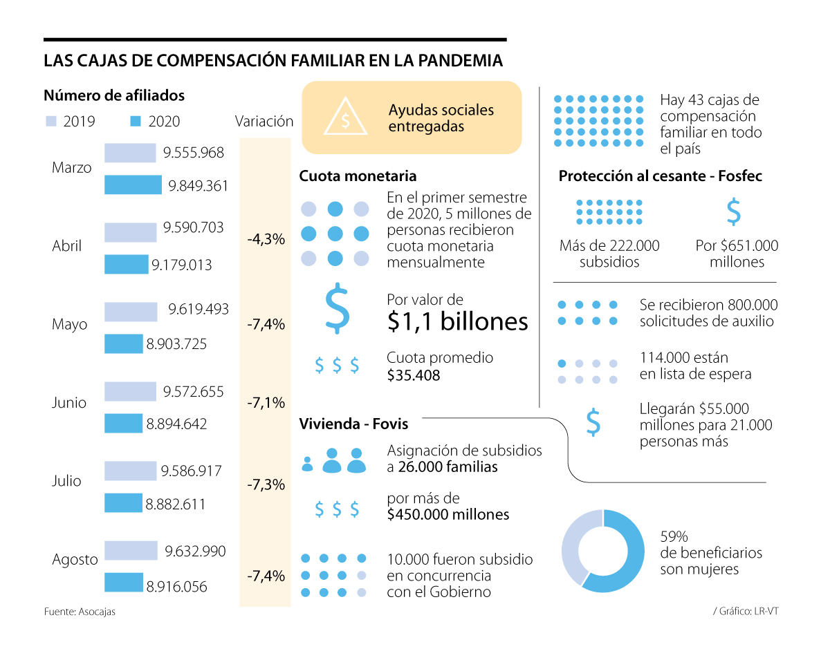 En Colombia hay 43 cajas de compensación, que tienen 8,8 millones de afiliados; Por la emergencia, perdieron entre 700.000 y 800.000 afiliados