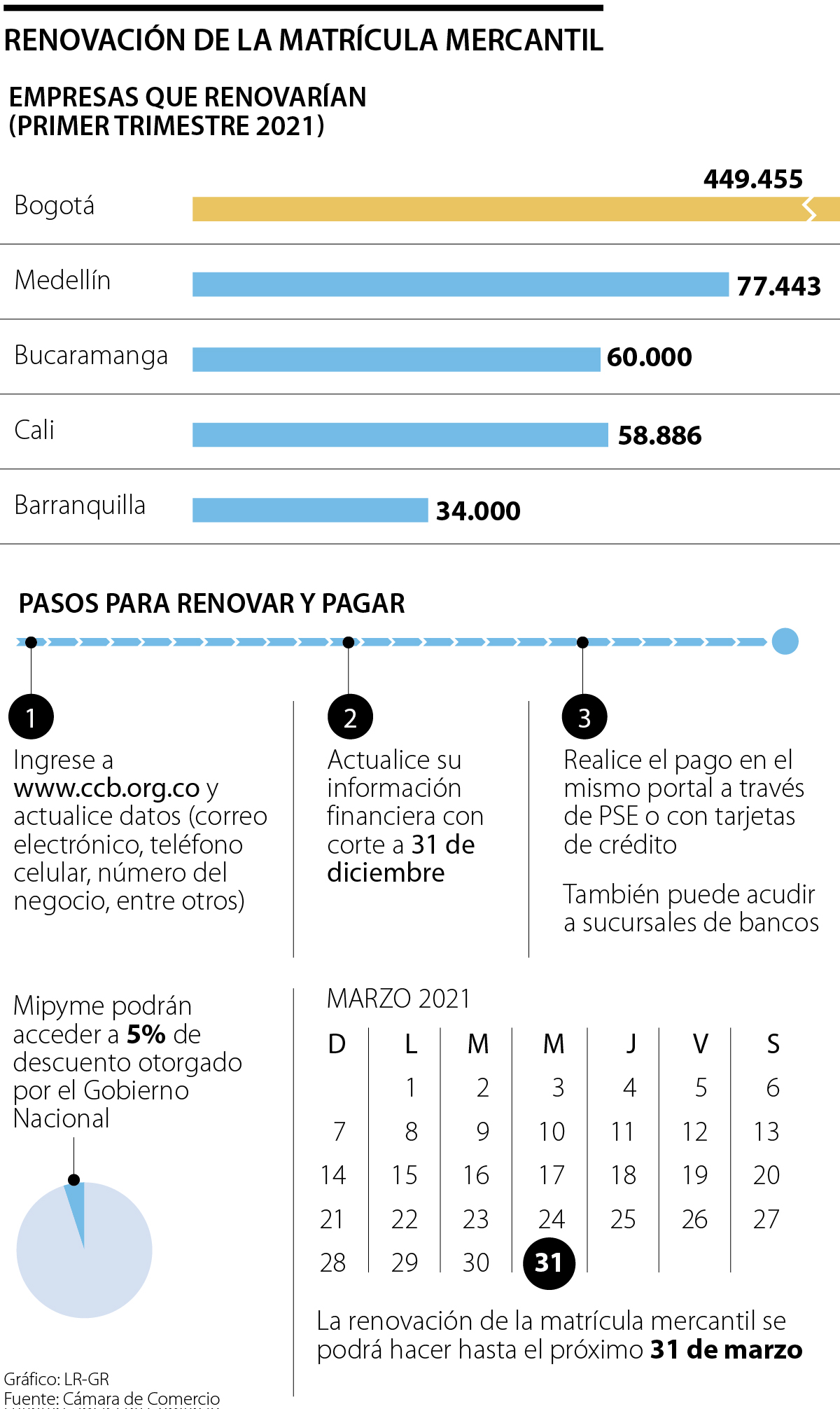 Desde la Cámara de Comercio de Medellín, el director de servicios registrales, Luis Javier Ramírez, dijo que prevén que 77.443 empresas realicen la renovación y, por ende, recibir $39.895 millones en ingresos de este primer trimestre de 2021.