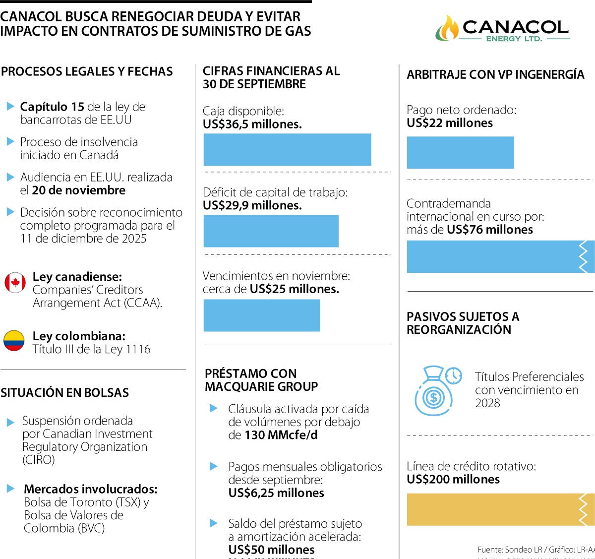 Este movimiento en Estados Unidos está conectado con lo que ocurre en Canadá, donde Canacol se acogió a la Companies’ Creditors Arrangement Act. Esta ley permite que las empresas con problemas de liquidez pidan protección mientras reorganizan sus deudas.