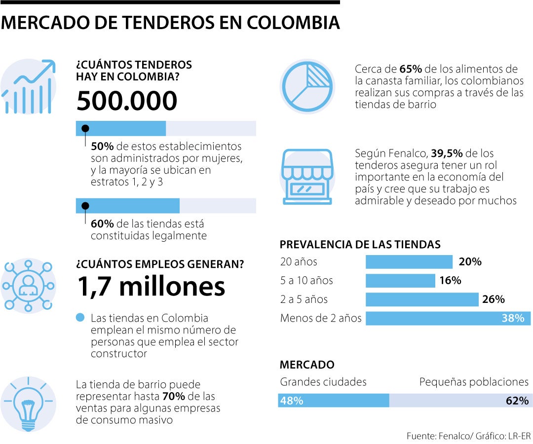 Uno de los canales de distribución de producto masivo en Colombia está a cargo de los tenderos. De hecho, según cifras de la Alcaldía de Bogotá, 65% de los productos que integran la canasta familiar son adquiridos a través de las tiendas de barrio, superando a los almacenes de cadena y a las grandes superficies.