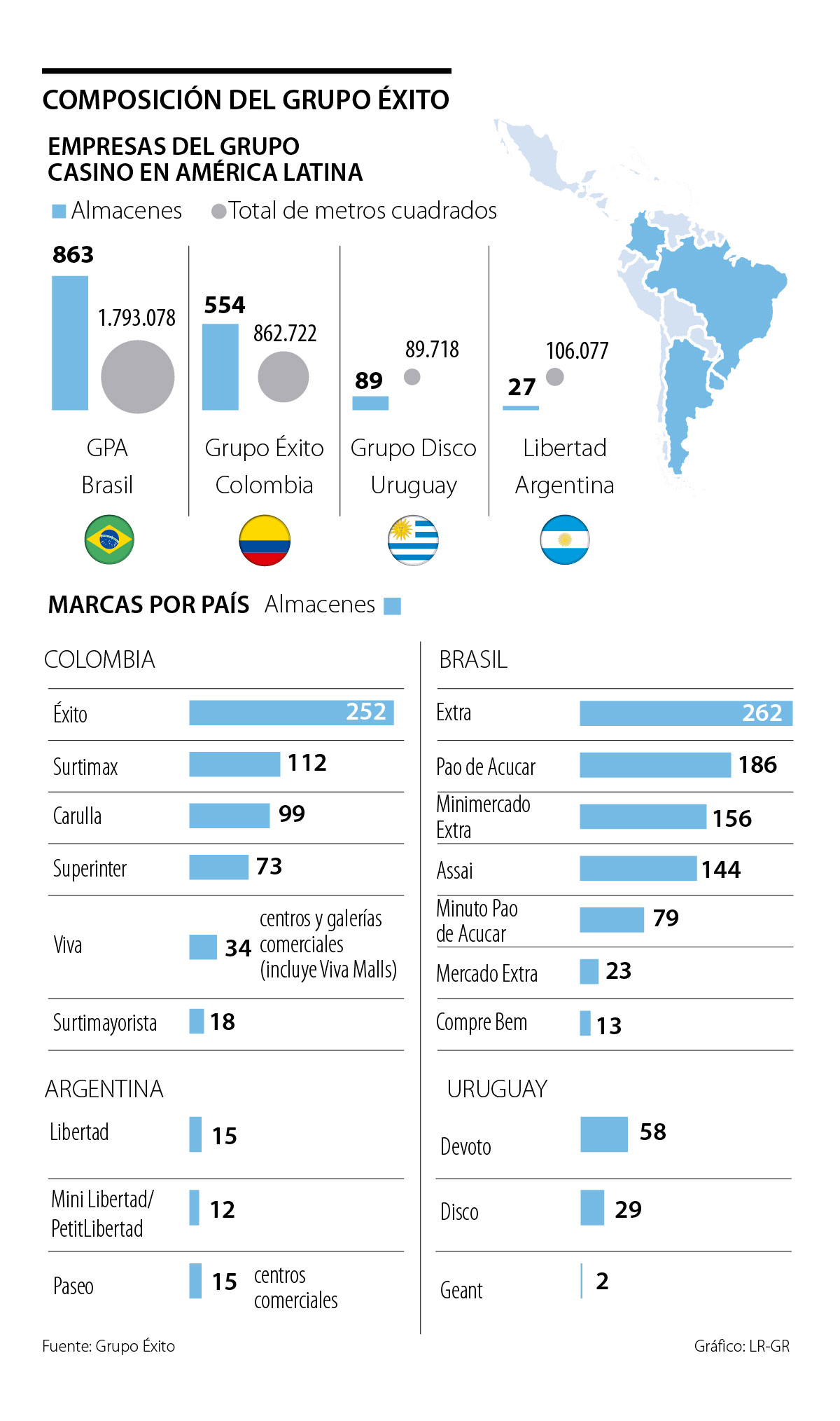 Grupo Éxito cuenta con 1.533 almacenes repartidos entre Colombia, Brasil, Argentina y Uruguay