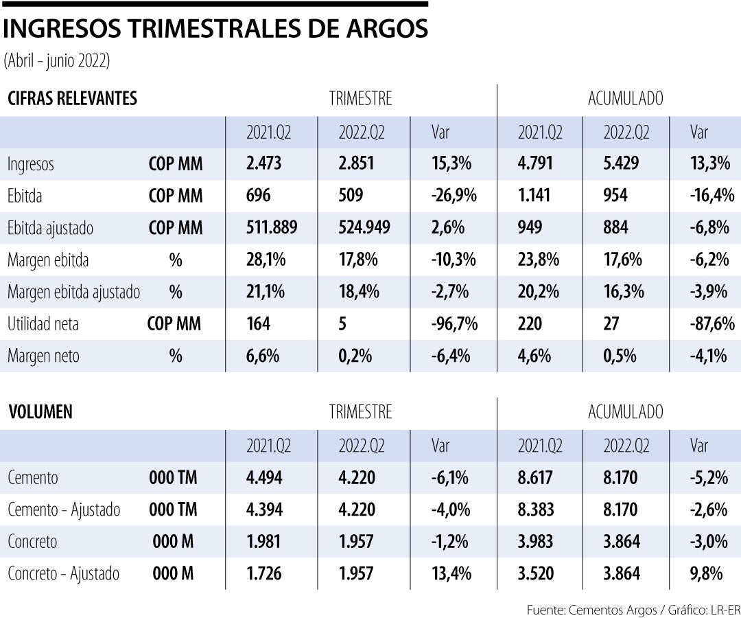 No obstante "la empresa reafirma su guía de ebitda consolidado para el año entre $2,05 y $2,15 billones para el cierre de 2022, al igual que un retorno de capital de alrededor de 10% para el mismo periodo", según Cementos Argos.
