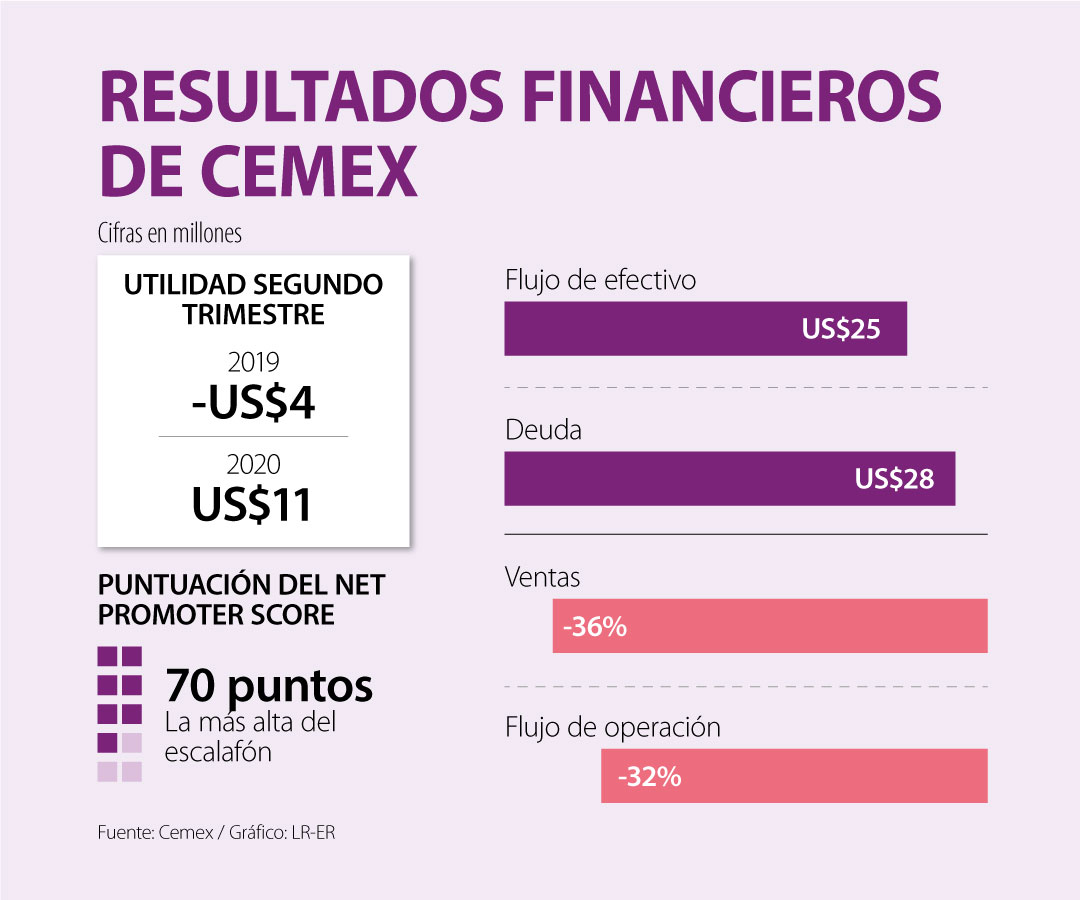 "Generamos US$25 millones de flujo de efectivo libre durante el trimestre y reducimos nuestra deuda neta en US$28 millones de marzo a junio. Generamos US$11 millones de utilidad neta durante el trimestre, en comparación con una pérdida de US$4 millones durante el mismo período del año pasado", señaló Cemex.