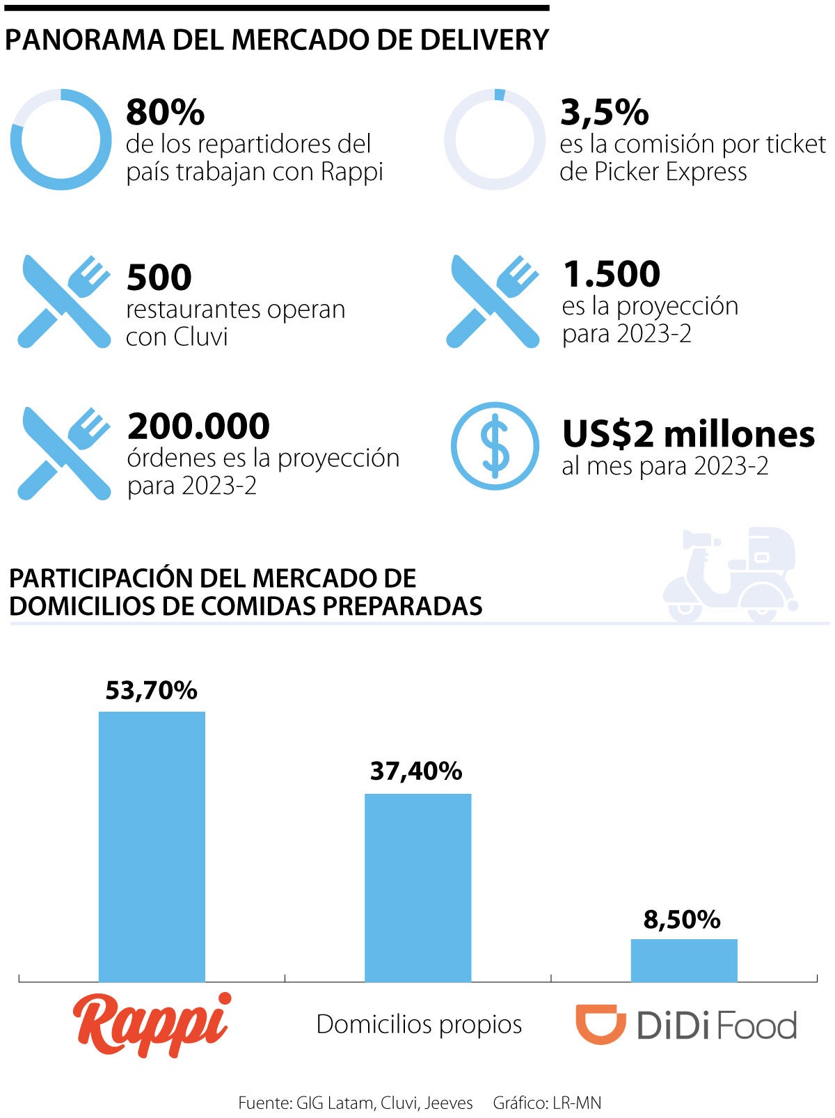 Si bien esta comisión varía, según el contrato con cada restaurante, la Asociación Colombiana de la Industria Gastronómica (Acodres) estima que en la mayoría de los casos es de aproximadamente 35%. Para el caso de Picker Express, “la comisión por ticket es 3,5%, más el domicilio”, indica Mancero de Picker Express.