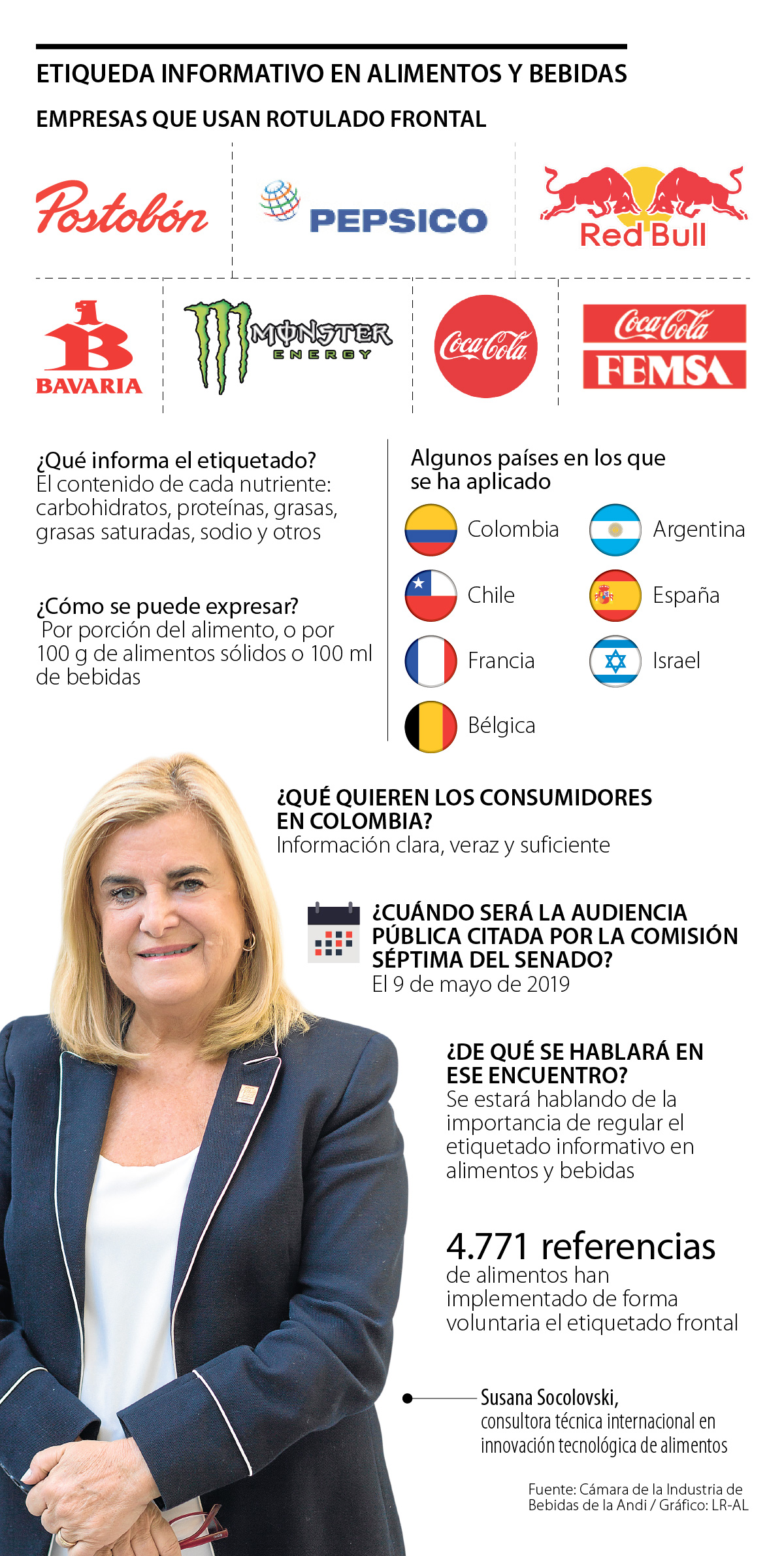 Con base en las iniciativas que ha venido adelantando la industria y la audiencia que se adelantará hoy, Susana Socolovski, consultora técnica internacional en innovación tecnológica de alimentos y regulación alimentaria y quien estará en el encuentro, aseguró que “Colombia está bien en este sentido de etiquetado frontal, ya que se le da espacio a la industria y a la academia”.
