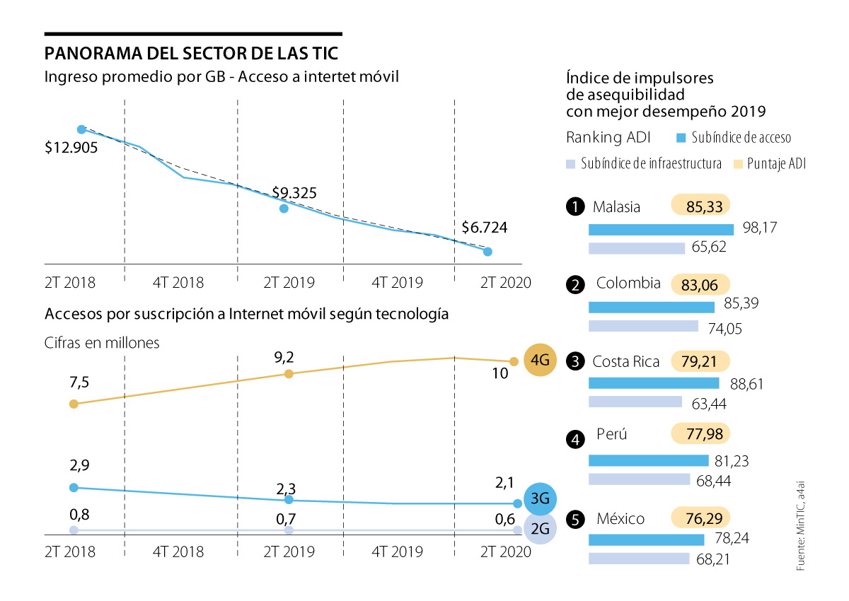 Archila también resaltó que “el último reporte de la Alianza para un Internet Asequible, A4AI, clasifica a Colombia como el segundo país con el internet más accesible”, con un índice de acceso de 85,39, así como un puntaje de 83,06; ubicándose después de Malasia que tuvo un índice de 98,17, y una puntuación de 85,33.
