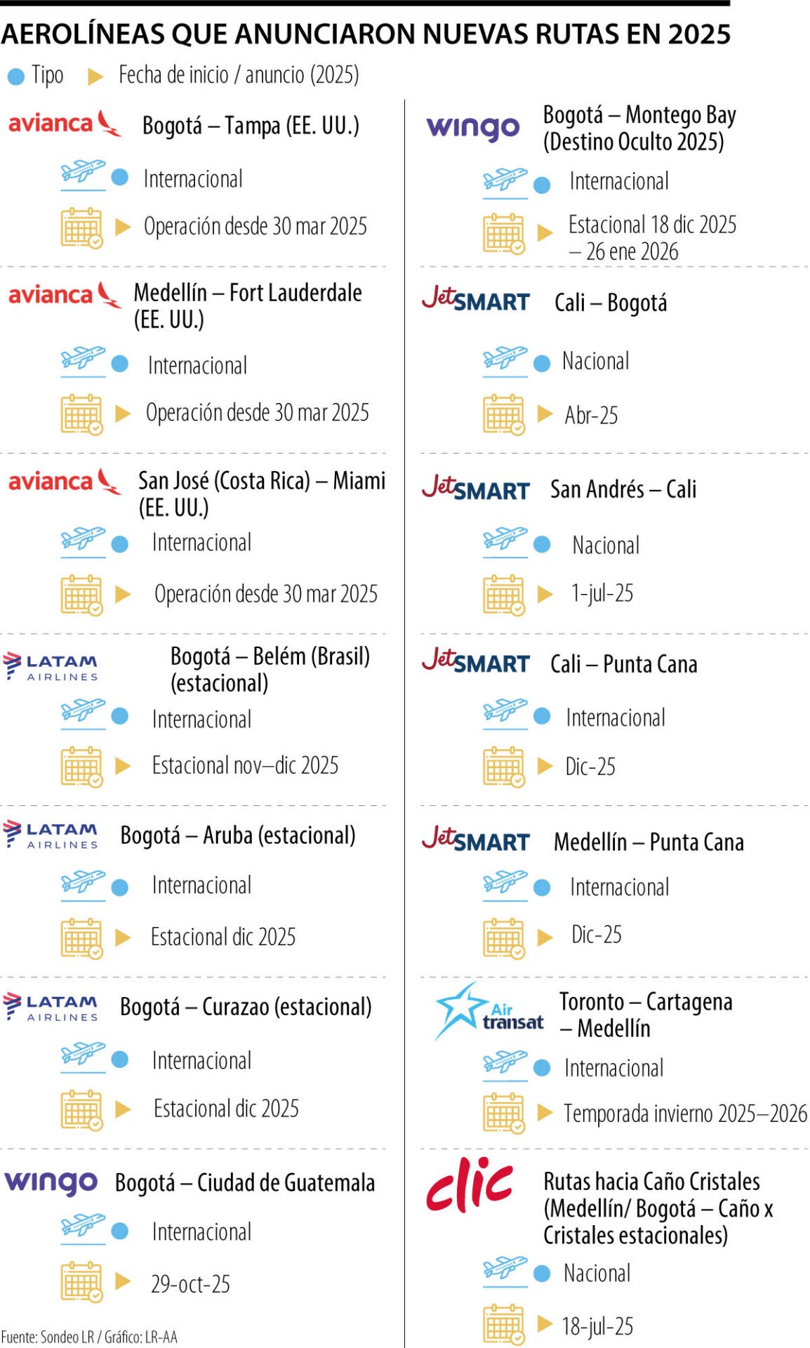 Colombia suma nuevas conexiones aéreas en 2025 con la entrada de nuevas rutas