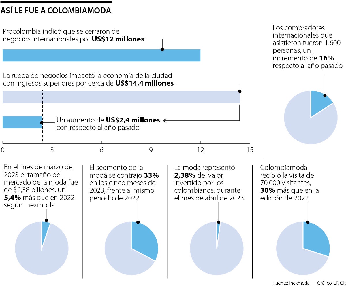 Ante esta situación, eventos del sector como Colombiamoda, se muestran como un “paliativo” en medio de la crisis. En su versión 2023, Inexmoda reportó, por ejemplo, que la tradicional feria, tras su culminación, recibió la visita de 70.000 visitantes, 30% más que en la edición de 2022.