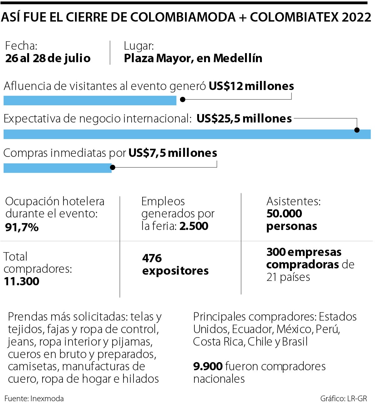 Con la clausura de los tres días de Colombiamoda + Colombiatex, en Medellín, el sector de la industria textil, hotelera y de cosmética tuvo una edición de recuperación económica. Según el Observatorio de Turismo de Medellín, la afluencia de visitantes al evento movió alrededor de US$12 millones. Cerca de 500.000 visitantes se dieron cita en la feria.