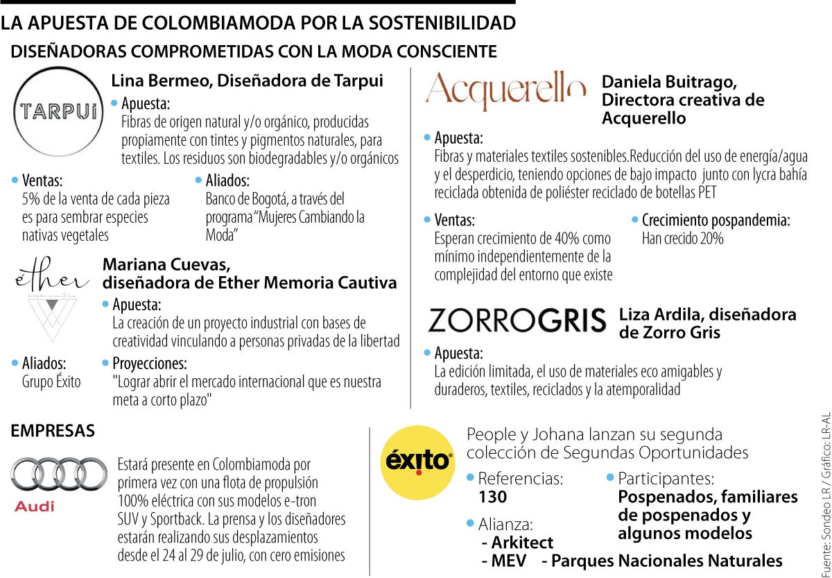 "Creemos que con la feria tendremos mayor visibilidad y oportunidad de negocios no solo en Colombia sino también a nivel internacional. Después de la pandemia hemos crecido un 20% como pyme es lo mínimo. Los números rojos provocados por la pandemia los hemos venido superando poco a poco pero como decía esperemos que después de Colombiamoda el cambio sea aun mas grande a nuestro favor", contó Daniela Buitrago, directora creativa de Acquerello.
