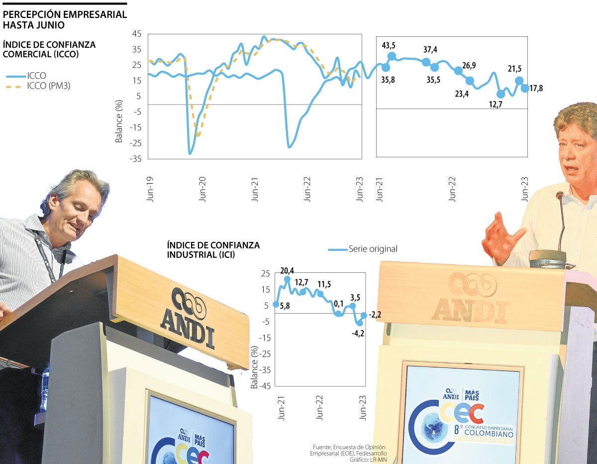 Esto, incluso se evidencia en la Encuesta de Opinión Empresarial de Fedesarrollo, en el que se nota que la confianza de los comerciantes quedó en 17,8% en junio de 2023, lo que representó una disminución de 3,7 puntos frente a mayo, cuando era de 21,5%. Además, el Índice de Confianza Industrial, ICI, se situó en -2,2%, aumentando en 1,9 puntos respecto al mes anterior. Es decir, al cierre del primer semestre, los indicadores que miden cierto nivel de optimismo del sector productivo se siguieron deteriorando.