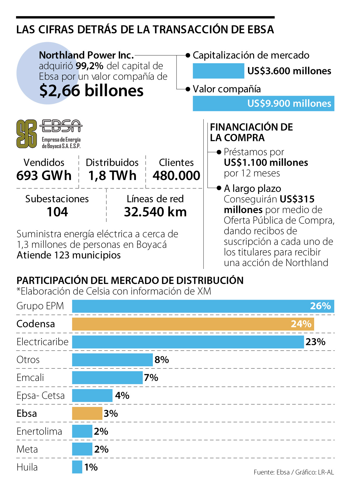 Northland resaltó que Ebsa es la única compañía de distribución de electricidad para el departamento de Boyacá, una región próspera ubicada cerca de la capital del país y que cuenta con abundantes recursos naturales y una economía en crecimiento respaldada por las industrias agrícola, minera e industrial.