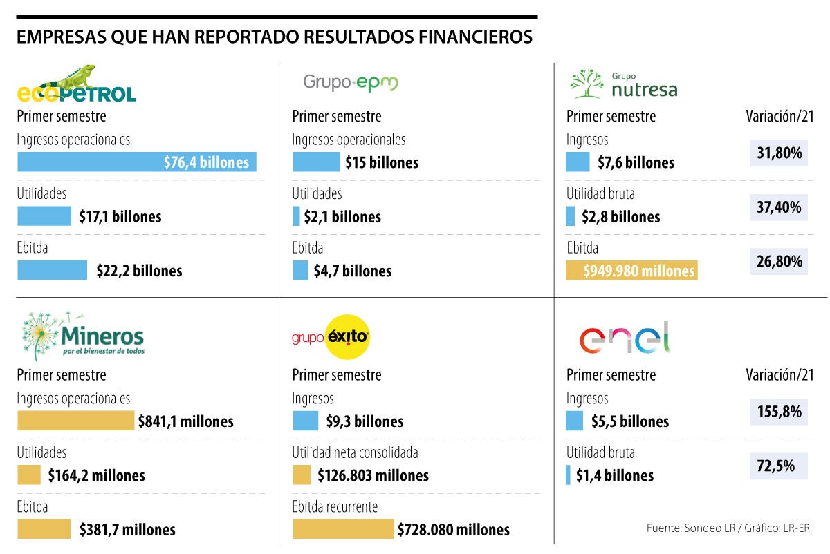 Las empresas reportan sus resultados financieros con corte a primer semestre de 2022. Basado en los informes elevados a la Superfinanciera, Ecopetrol es la que va al frente. La compañía ha venido creciendo desde segundo semestre de 2020 y esta primera mitad del año se considera el mejor balance financiero de su historia.