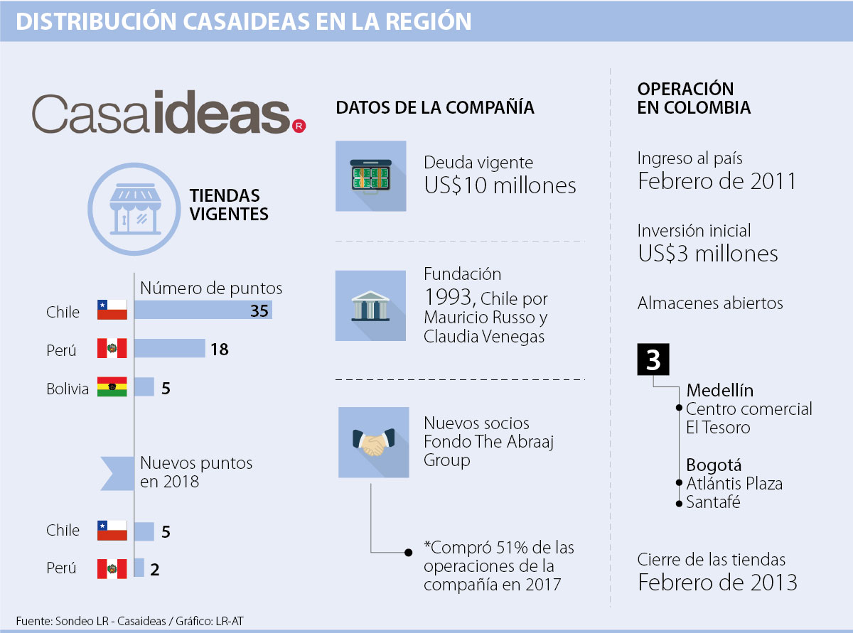 Sin embargo, la compañía chilena no es la misma de ese entonces. El año pasado el fondo de Emiratos Árabes, Abraaj Group, adquirió 51% de las acciones de Casaideas, lo que agregó nuevos socios al grupo en el que solo estaban Mauricio Russo y Claudia Venega, quienes habían fundado la empresa en 1993.