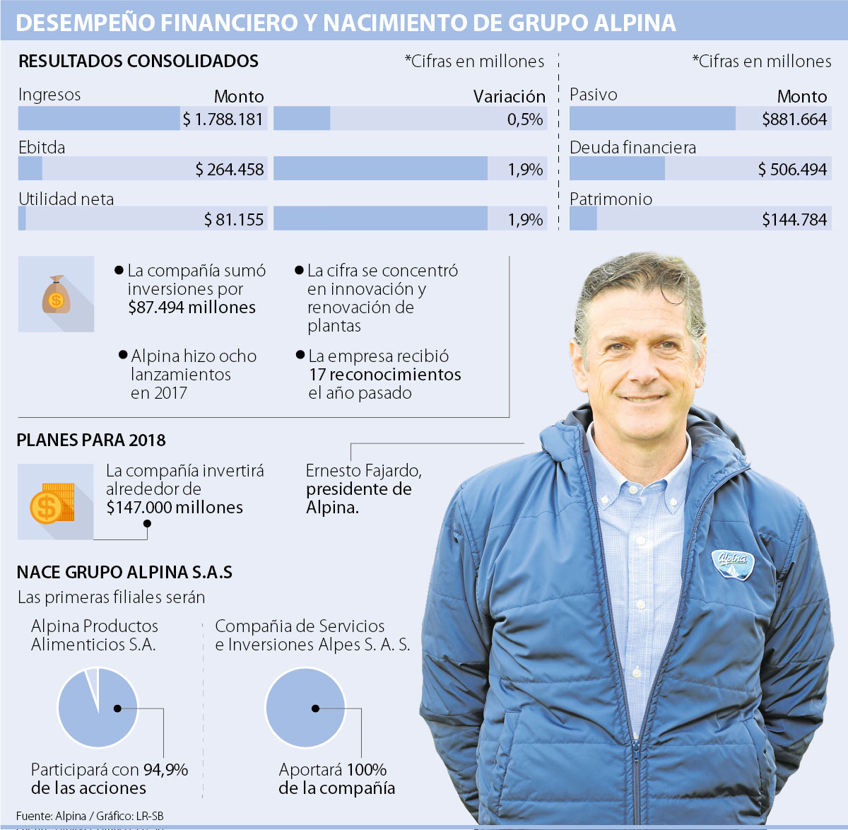 “Tenemos un negocio lácteo muy fuerte pero hay muchas capacidades que queremos utilizar de forma diferente para ver otras oportunidades. Esto es algo para lo que nos venimos preparando hace dos años y que está relacionado con la creación de la holding”, aseguró Ernesto Fajardo, presidente de Alpina y quien también estará a la cabeza del grupo.