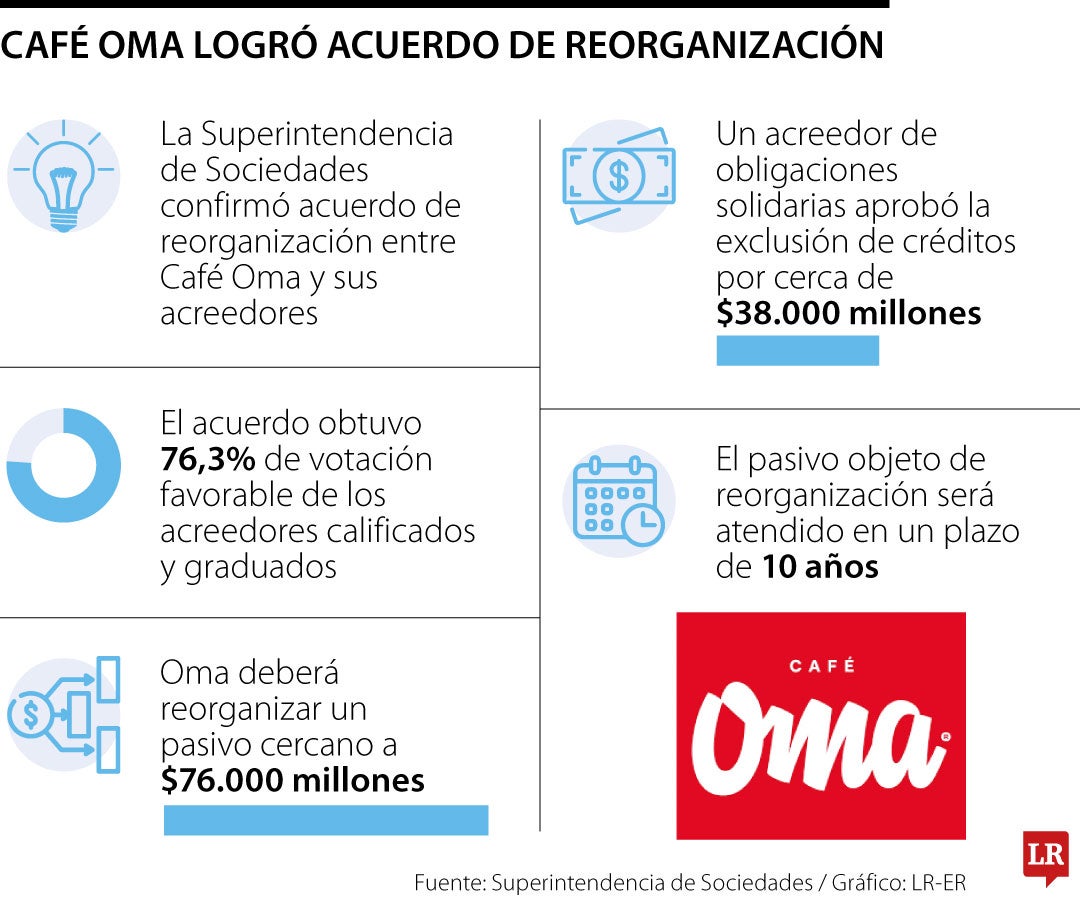 La Superintendencia de Sociedades confirmó que, en audiencia pública celebrada este lunes 20 de abril de 2026, el juez concursal confirmó el acuerdo de reorganización empresarial de la sociedad Restcafé S.A.S., identificada en el mercado por el uso de la marca OMA, de conformidad con lo dispuesto en la Ley 1116 de 2006.
