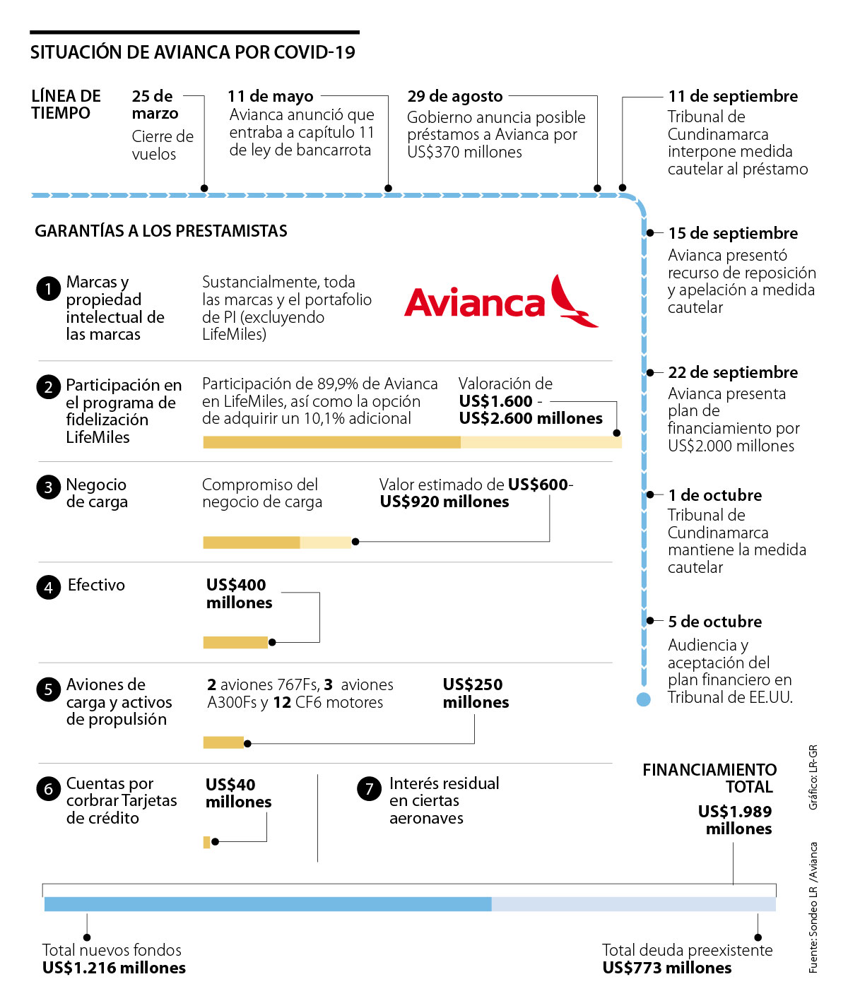Ahora bien, para darle seguridad a los prestamistas, la aerolínea les dio siete garantías: participación en el programa de fidelización LifeMiles; el negocio de carga; cuentas por cobrar de tarjetas de crédito; marcas y propiedad intelectual de las marcas; aviones de carga y activos de propulsión; interés residual en ciertas aeronaves y cuentas en efectivo.