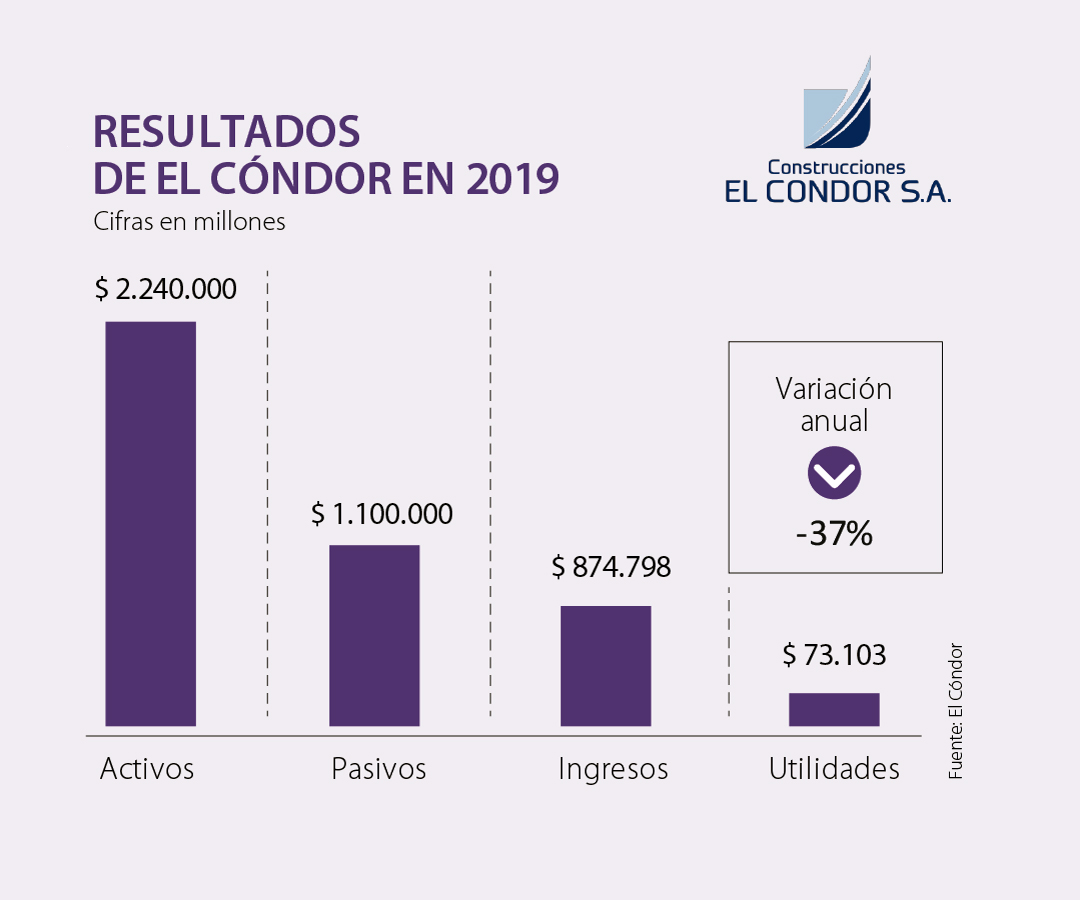 A diciembre de 2019, la utilidad neta de El Cóndor fue de $ 73.103 millones, cifra que, en relación al cierre de 2018, registra una disminución del 37%.