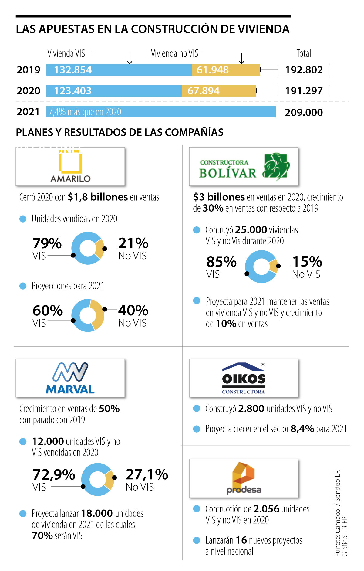 Oikos también vivió del éxito general del sector del año pasado. Luis Aurelio Díaz, gerente general de la constructora, espera un crecimiento de 8,4% para 2021, cifra con la cual quieren incrementar las 2.800 unidades VIS y no VIS vendidas en 2020 en medio de la crisis.