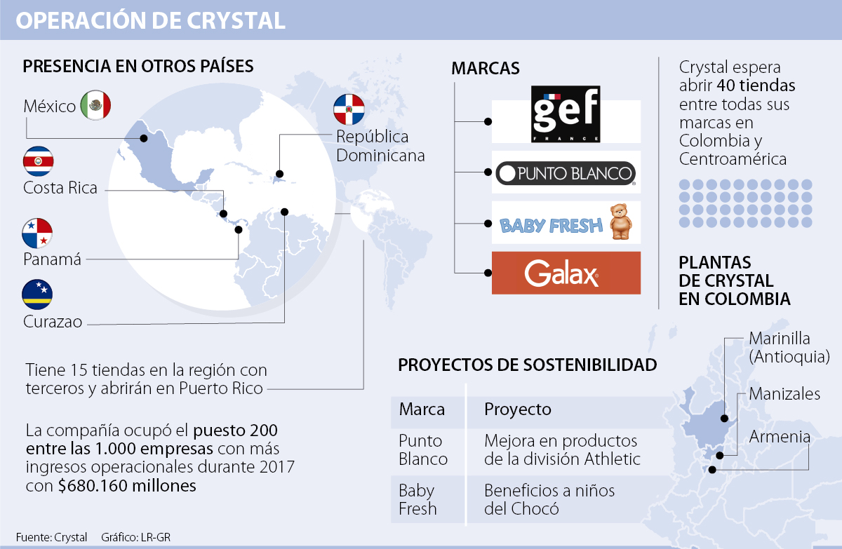 Los países de Centroamérica donde se daría esta ampliación en el portafolio de tiendas de Crystal son Costa Rica, Curaçao, República Dominicana, Panamá y México. Gallo aclaró que en Panamá, la presencia de la firma se da a través de terceros, y en México se encuentran establecidos en el Palacio de Hierro.