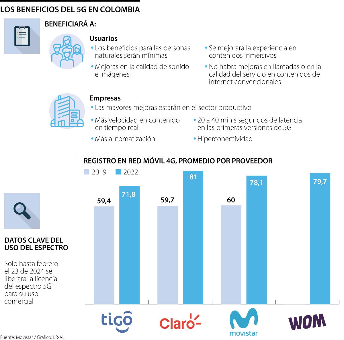 “Habrá beneficios en muchos niveles y sectores, todo enfocado en cambiarles la vida a los colombianos. Podemos tener para el usuario velocidades de subida y descarga entre 20 y 40 veces más. En las empresas tendremos todo un sistema de innovación, beneficios en realidad aumentada, robótica, metaverso y demás”, dijo el MinTIC.
