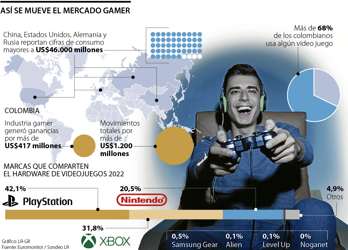 Colombia no es ajena a esta realidad, pues genera ganancias por encima de US$417 millones, luego que el año pasado hubo negocios por arriba de US$1.200 millones. Lo anterior, también es como resultado que más de 60% de las personas interactúan con algún tipo de videojuego según el Dane.
