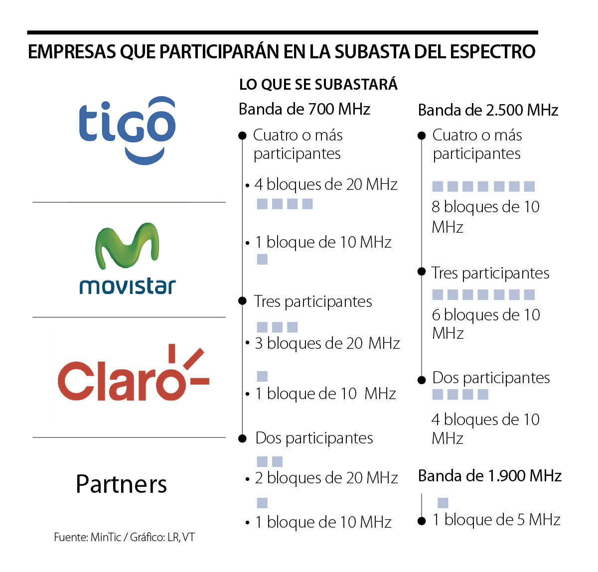 Con esta propuesta, estarán presentes los tres operadores más grandes en la subasta que se realizará el 20 de este mes y otro que no se conocía. Con ello, se garantiza que por lo menos se subasten tres bloques de 20m MHz y uno de 10 MHz en la subasta de 700 MHz; la banda más apetecida por el mercado al ser la de mayor alcance.