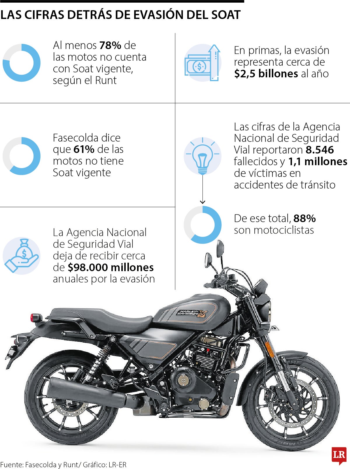 Según Fasecolda, la Agencia Nacional de Seguridad Vial deja de recibir cerca de $98.000 millones anuales para adelantar programas de prevención en seguridad vial. En primas, la evasión representa cerca de $2,5 billones al año.
