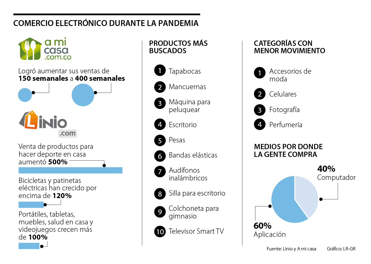 El comercio electrónico se ha convertido en la salvación de las empresas de cara a la pandemia, pues al no poder salir de sus casas, las personas buscan maneras de seguir comprando lo que necesitan y quieren sin ponerse en riesgo. Esta situación también ha transformado los hábitos de consumo de los colombianos, pues según información del comercio electrónico Linio, se ha evidenciado un aumento en las categorías de deporte y cómputo con casi 500% de más.