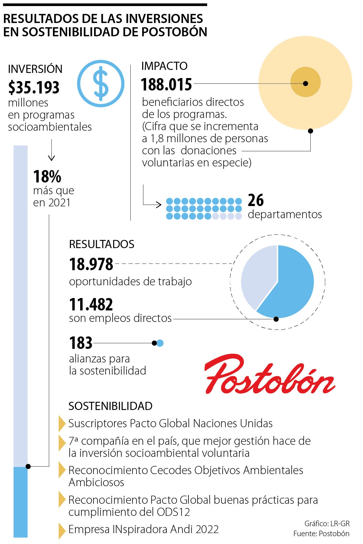 “La sostenibilidad es nuestro sentido de orientación”, fue un primer mensaje que se pudo leer en el reporte trimestral 2022 de Postobón. Lo primero que destaca son los más de $35.000 millones destinados a esta categoría lo que incluso fue casi 20% más que en 2021.