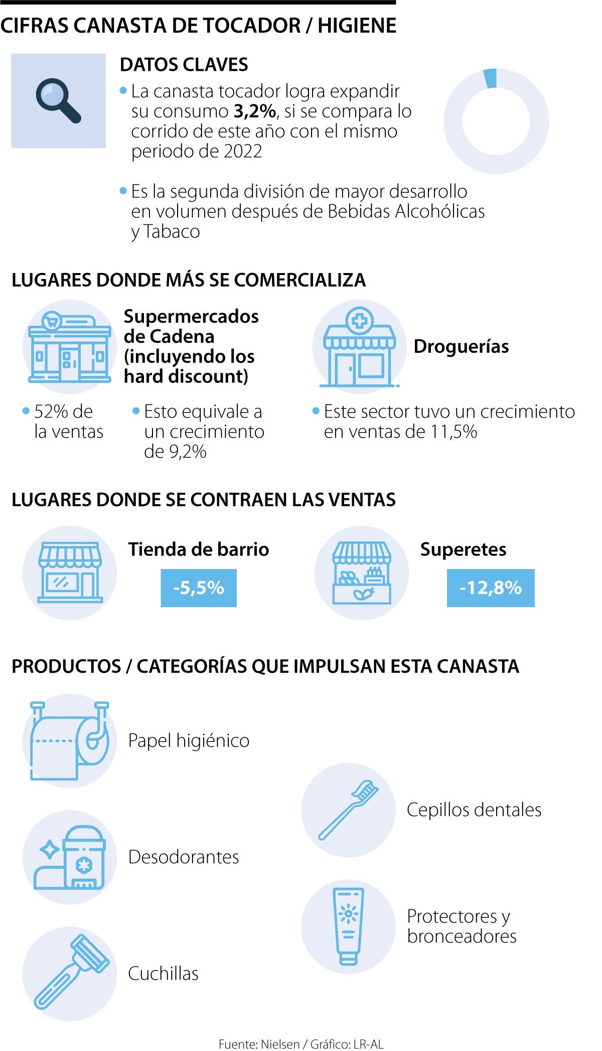 Según un estudio de Nielsen, el papel higiénico, los desodorantes, protectores solares, cepillos dentales y las cuchillas de afeitar son algunos de los productos que impulsan esta canasta de higiene o, como la organización los denomina, de tocador.