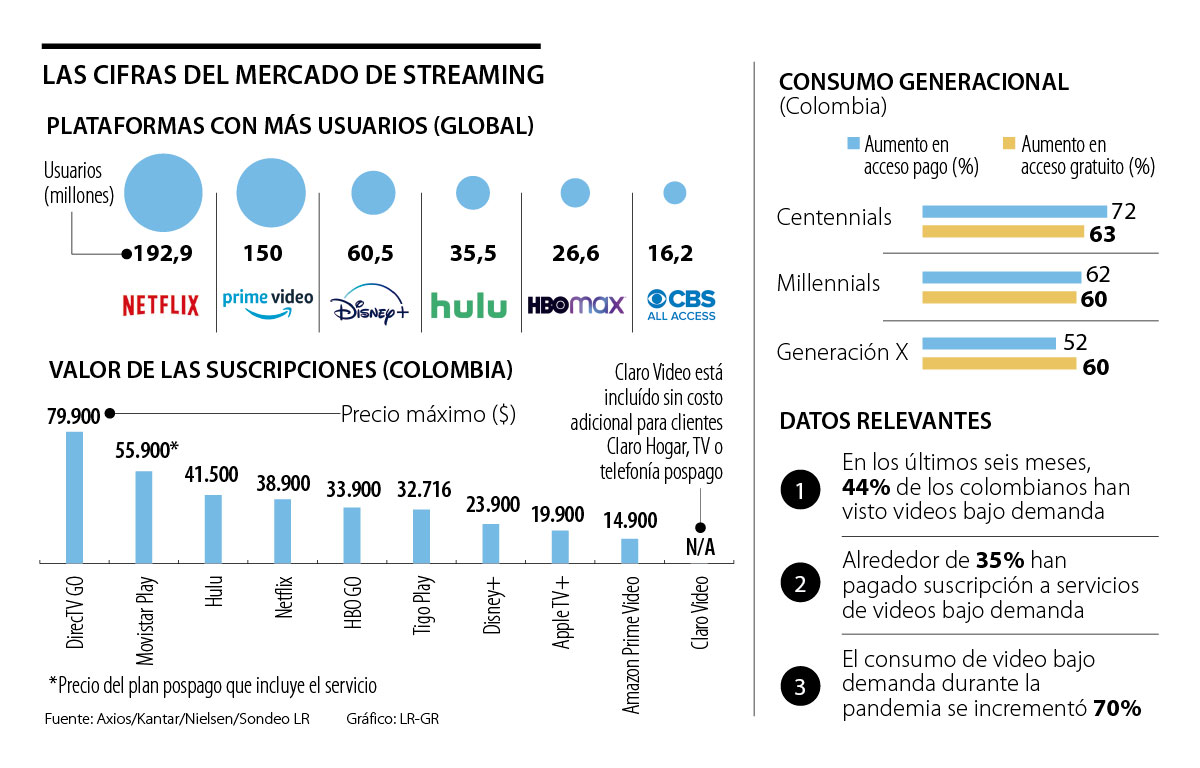 Desde el próximo 17 de noviembre, la guerra por dominar el mercado de streaming sumará un nuevo episodio. Si bien Netflix se mantiene como el puntero, ve amenazado su reinado con el avance de Disney+ y su llegada a Colombia, así como a otros países de América Latina.