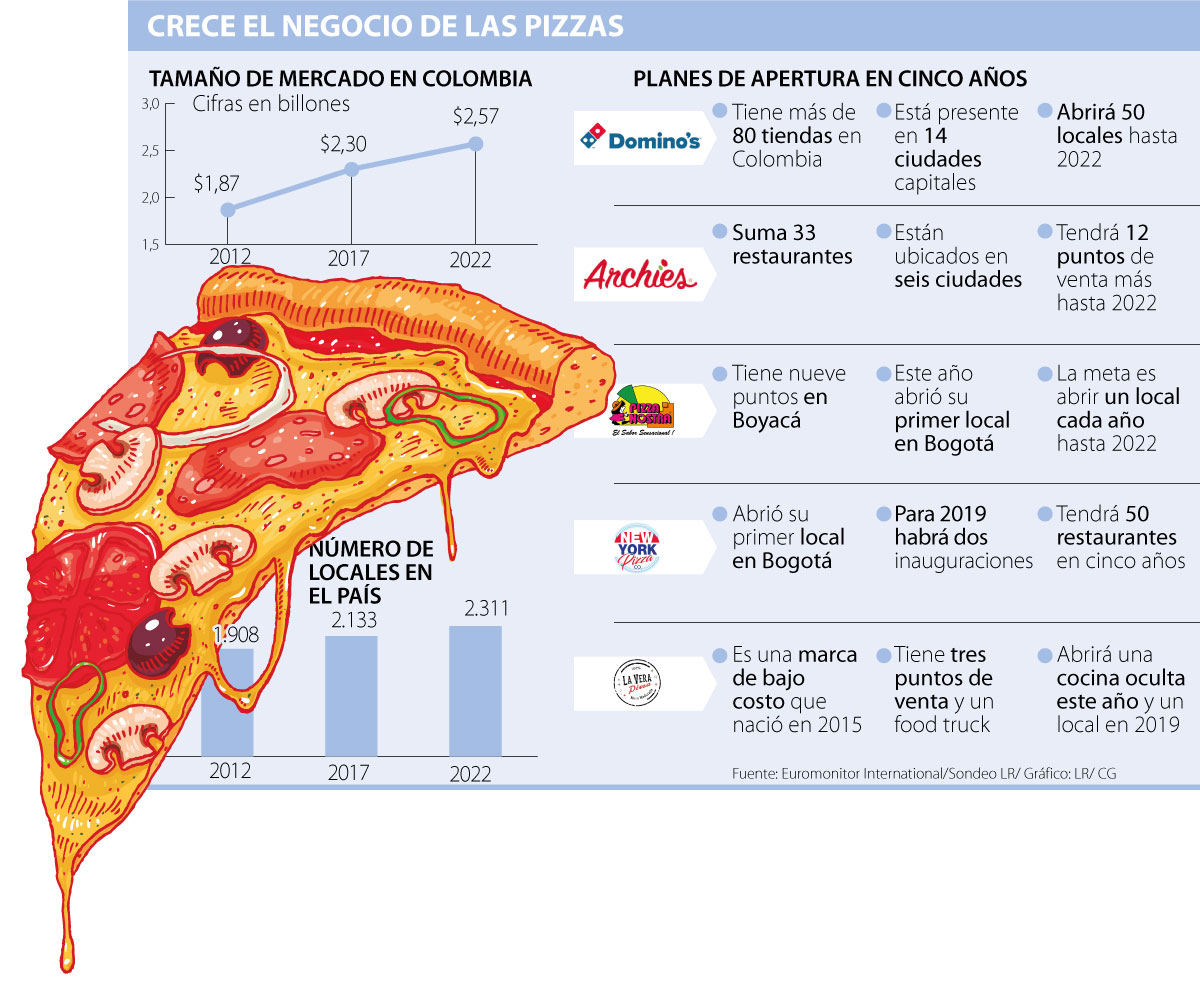 Pese a que en el país existen 2.133 locales de pizza, de acuerdo con las cifras de la firma investigadora de mercados Euromonitor International, los jugadores de trayectoria en el sector y los nuevos en la categoría tienen listos sus planes de expansión para los próximos cinco años ¿El objetivo? Conquistar con propuestas novedosas a los amantes de la tradicional mezcla de masa, salsa y queso.