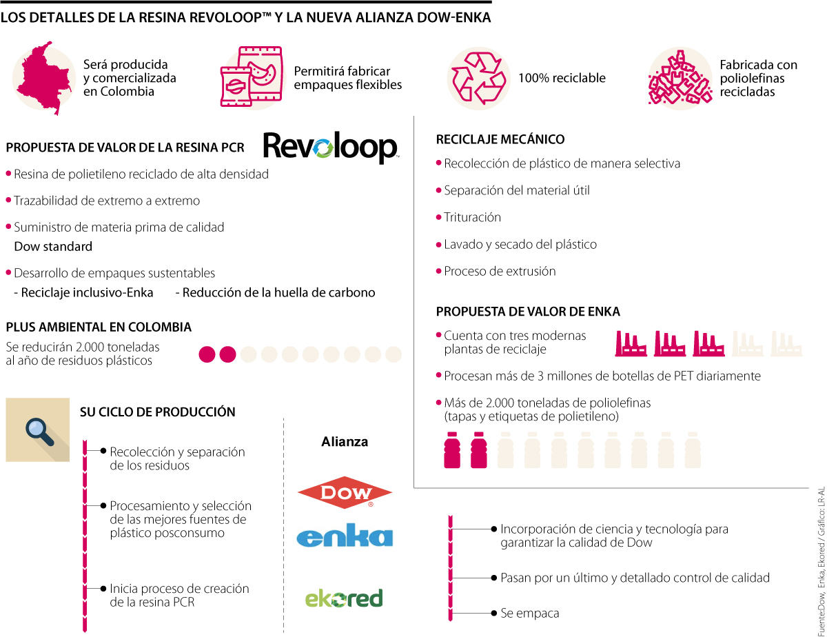 Para Dow, la clave del éxito de la estrategia está en que su aliado, Enka, se posiciona en el mercado como el líder en el reciclaje de botellas PET posconsumo en Colombia, con la planta más grande de Suramérica. Además, la empresa cuenta con tres modernas plantas de reciclaje en las cuales se procesan más de 32.000 toneladas de botellas y más de 2.000 toneladas de poliolefinas. A eso se le suma, lo ya anunciado, la nueva infraestructura que ayudará a multiplicar el reciclaje de poliolefinas, alcanzando 4.000 toneladas al año, que se destinarán a la alianza con Dow.