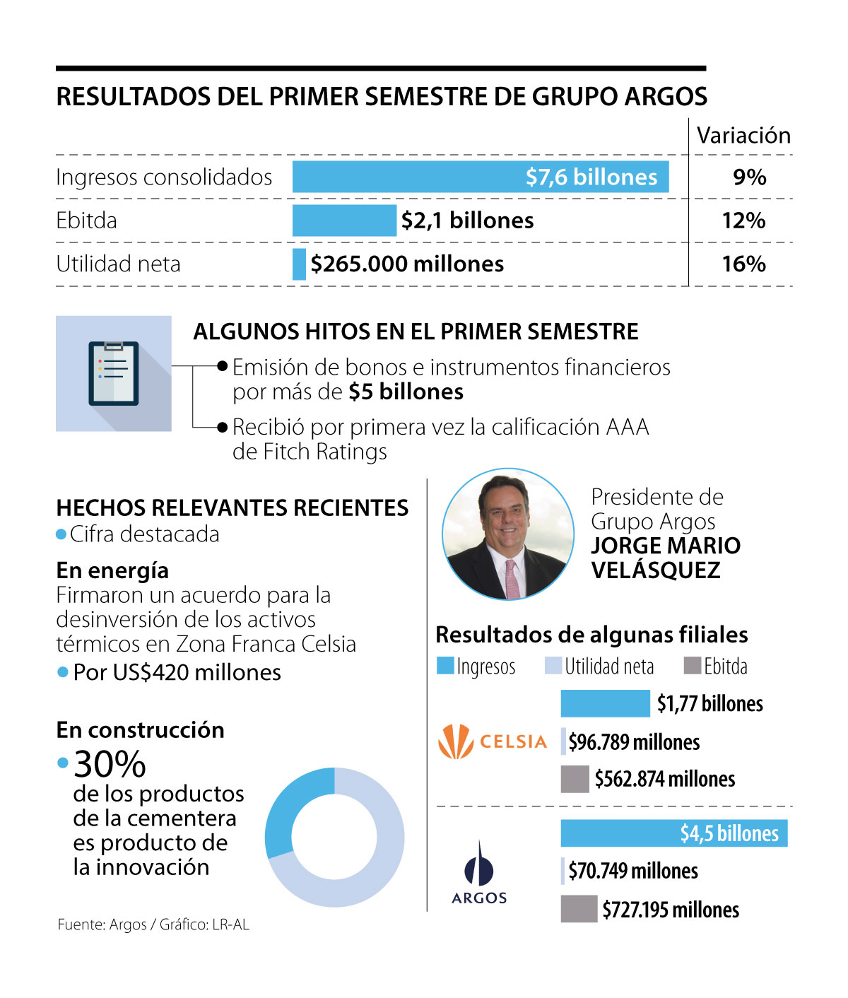Estos datos “son el producto de varios hitos como la incorporación de activos de transmisión y distribución en nuestra filial de energía Celsia, por cerca de $2 billones , y las operaciones de optimización financiera en el negocio de concesiones, que incluyeron emisiones de bonos por cerca de $2,5 billones”, según Jorge Mario Velásquez, presidente de la holding.
