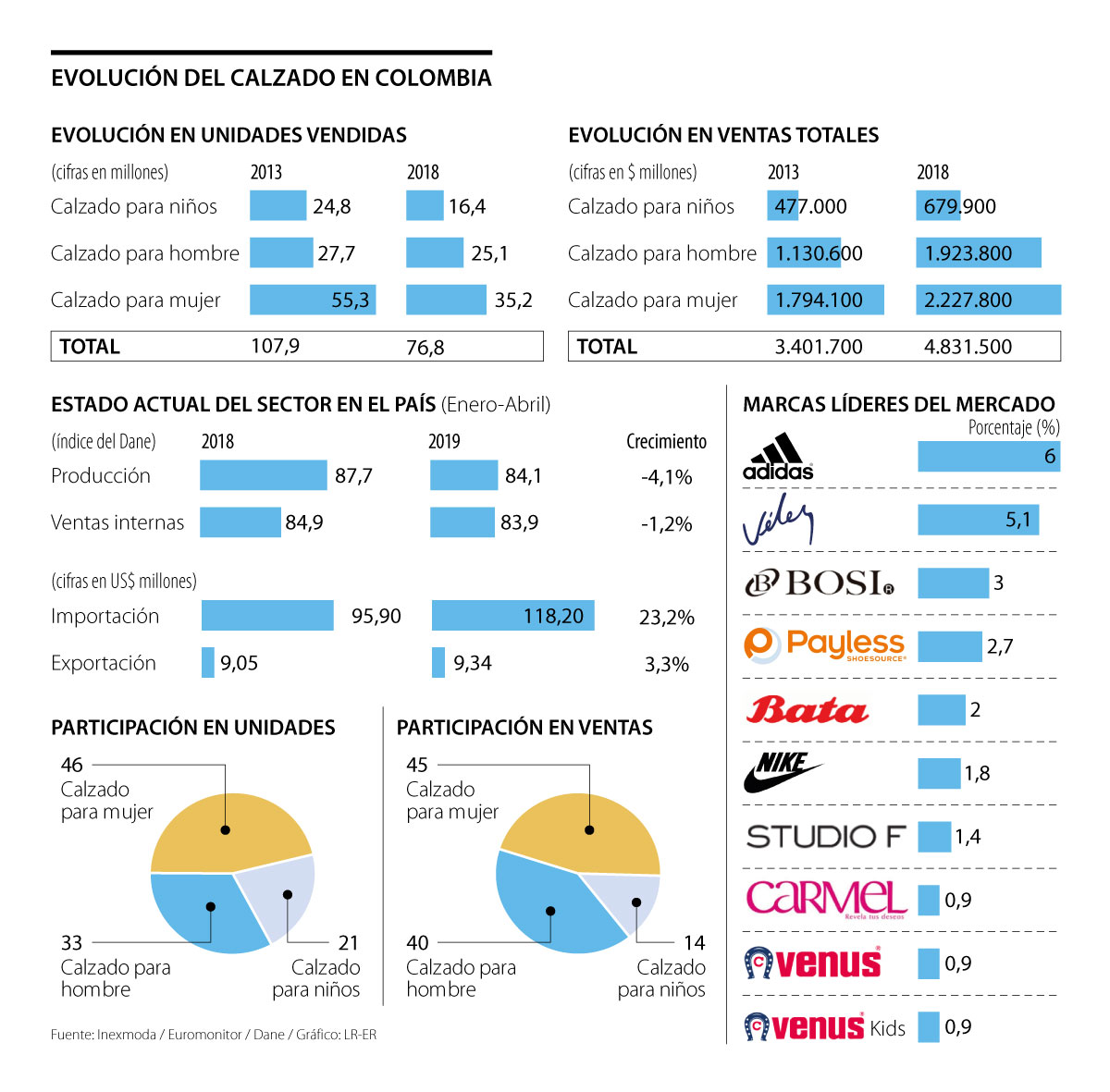 Según cifras del proveedor de investigación de mercado Euromonitor International, el mercado de calzado en Colombia logró ingresos de $4,8 billones durante 2018. De ese total, el segmento femenino se llevó alrededor de 45%, gracias al impulso en las ventas de tenis, que viene de la mano con la creciente demanda de ‘confort’ en las compras de las mujeres colombianas, que han aumentado 24% en los últimos cinco años.