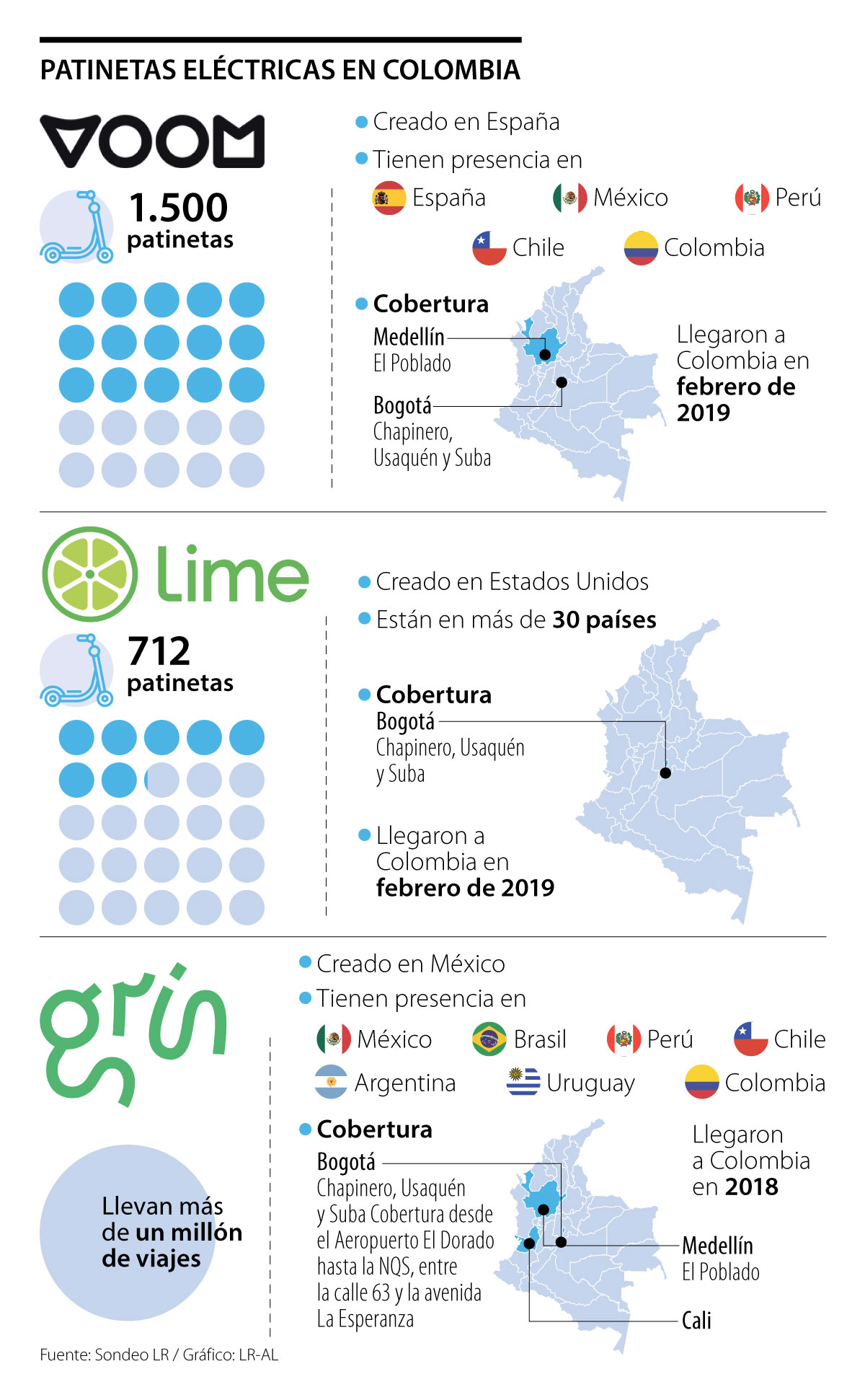Pero esta no es la única empresa que está en el negocio, luego de Grin entraron Lime, Voom, Cosmic y Muvo.