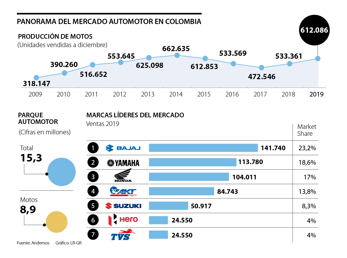 Pese a que la compañía acaba de lanzar desde su planta de producción de Jaipur tres nuevos productos, estos todavía tendrán que esperar para llegar al mercado colombiano donde el fabricante de motos ocupa el sexto puesto en el mercado con 24.550 unidades vendidas en 2019 y 4% del market share.