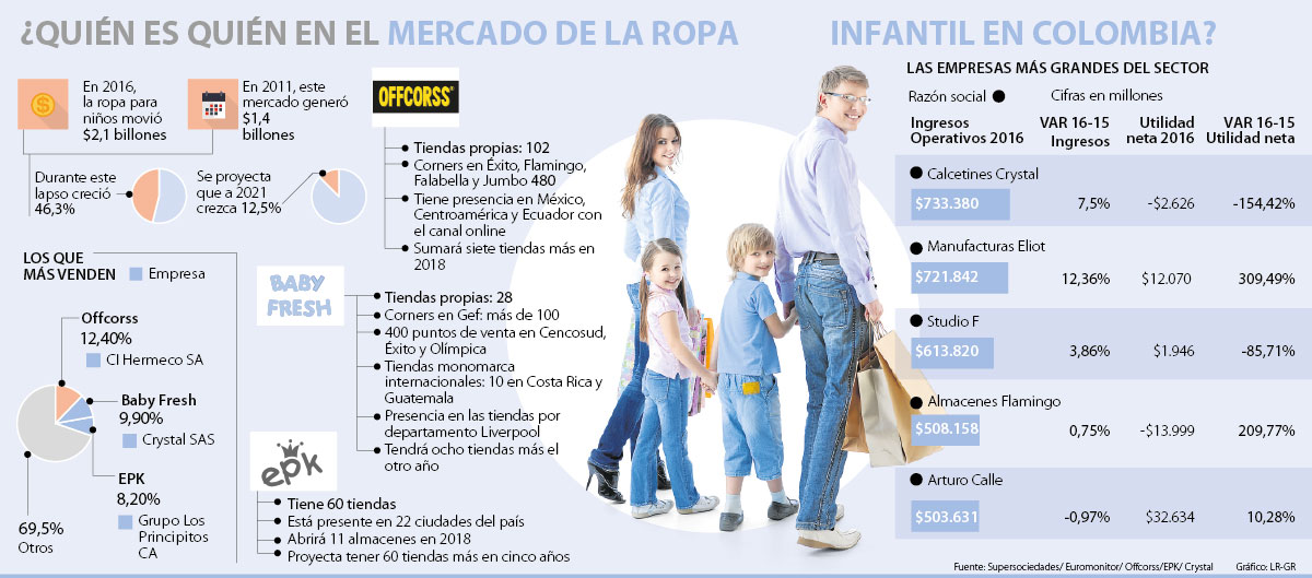 Entre 2011 y 2016, el mercado de la ropa infantil creció 46,3% y alcanzó a generar $2,1 billones, de acuerdo con Euromonitor International. EPK es una de las tres empresas que más vende. Según el reporte, CI Hermeco S.A está en el podio con Offcorss, que tiene 12,4% de participación en ventas; sigue Baby Fresh del Grupo Crystal con 9,9%; y en tercer lugar, EPK con 8,2%.
