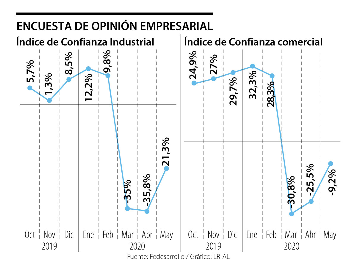 El mayor incremento lo experimentó el Índice de Confianza Comercial (Icco), que se recuperó en 16,3 puntos porcentuales con relación al dato de abril y se ubicó en -9,2%.
