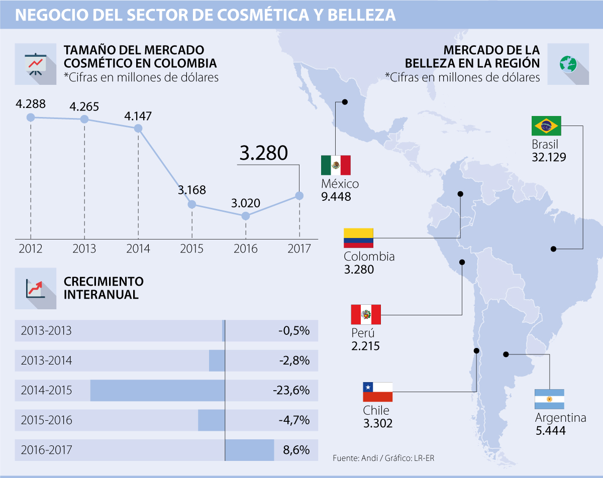 Entre 2014 y 2016, el negocio de los cosméticos y la belleza no tuvo buenos resultados. El promedio de ventas esos años estaba en US$3.000 millones ($9 billones), venía de caídas interanuales en los ingresos generales del sector, las principales marcas estaban estancadas en sus utilidades y se alejaba cada vez más del pico histórico de casi US$4.300 millones ($13 billones) de 2013.