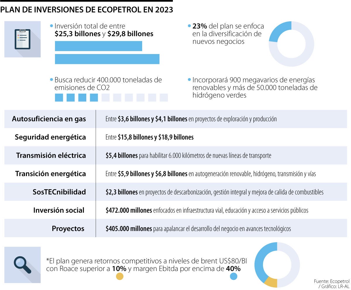 La Junta Directiva de Ecopetrol aprobó el plan general de inversiones con un monto que oscila entre $25,3 billones y $29,8 billones para el año 2023. El plan de inversión tiene la finalidad de avanzar en los cuatro pilares de la estrategia de 2040, así como en la ruta para la transición energética en Colombia.
