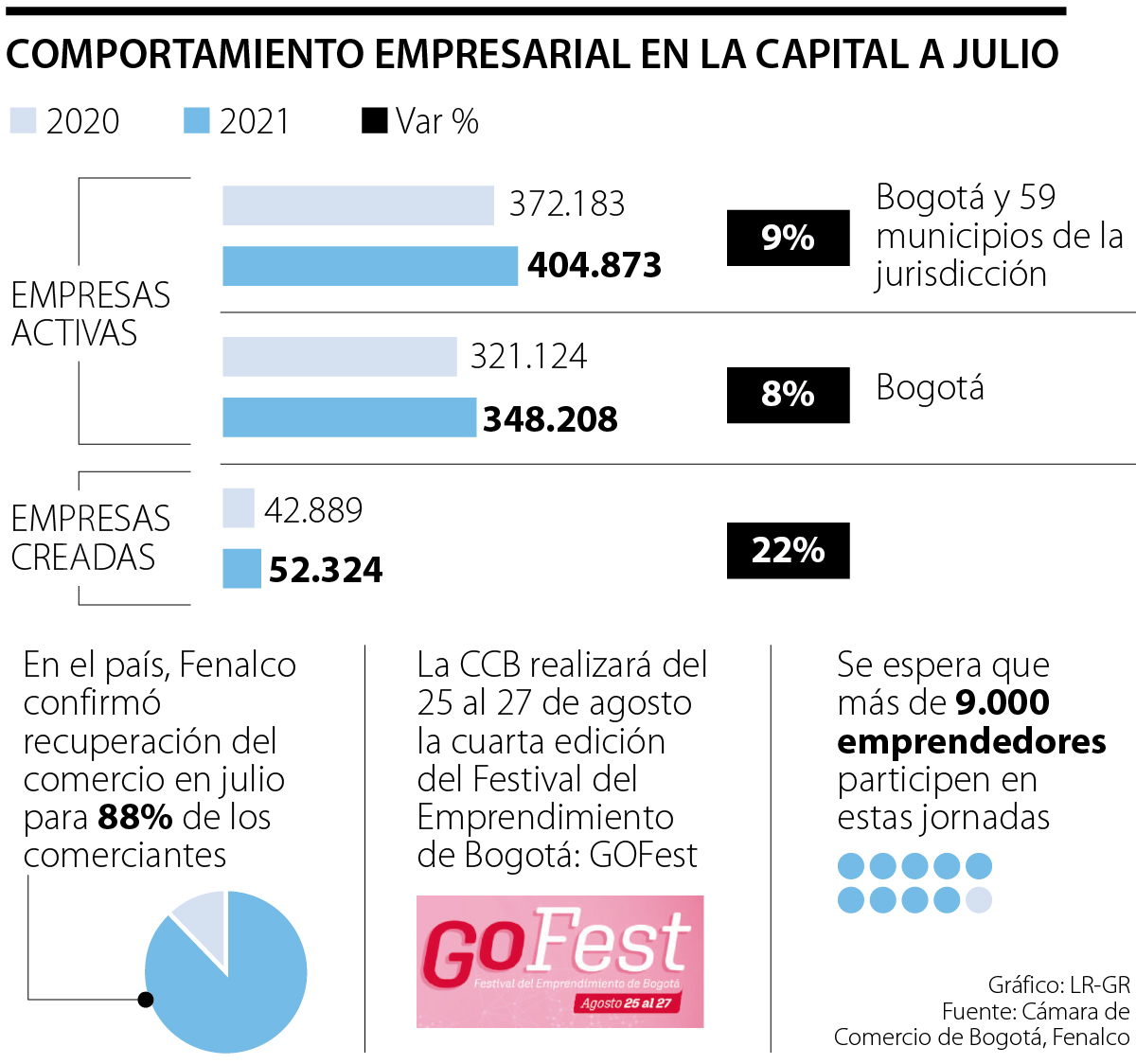 Por otro lado, la Cámara realizará del 25 al 27 de agosto la cuarta edición del Festival del Emprendimiento de Bogotá GOFest de manera virtual. Este espacio buscará impulsar a la ciudad como la capital de la creación de empresas.